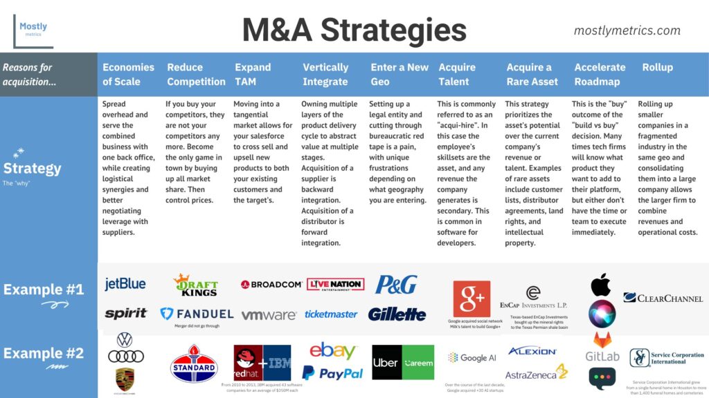 Most M&A strategies occur for one of 9 reasons: